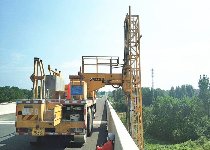3、桥检车展开工作平台前注意支腿安放是否到位;展开工作平台时后方应挥红旗提醒来往车辆。